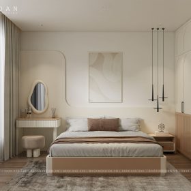 Thiết kế thông minh với tủ quần áo rộng rãi, kệ đầu giường tiện dụng, cùng các chi tiết trang trí được chăm chút kỹ lưỡng. Giúp không gian luôn gọn gàng, ngăn nắp mà vẫn giữ được sự mềm mại, tinh tế.