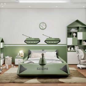 Phòng ngủ con trai năng động chủ đề xe tăng sáng tạo PTE39