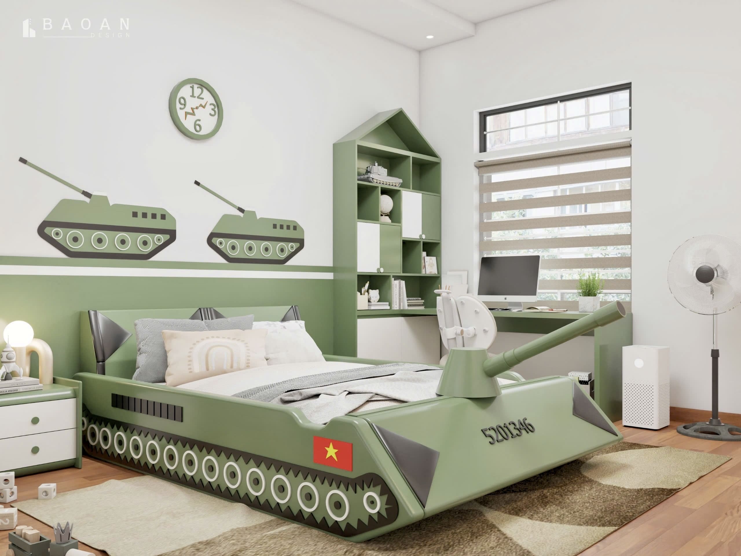 Thiết kế phòng ngủ bé trai PTE39 chủ đề xe tăng độc đáo khơi gợi sự sáng tạo