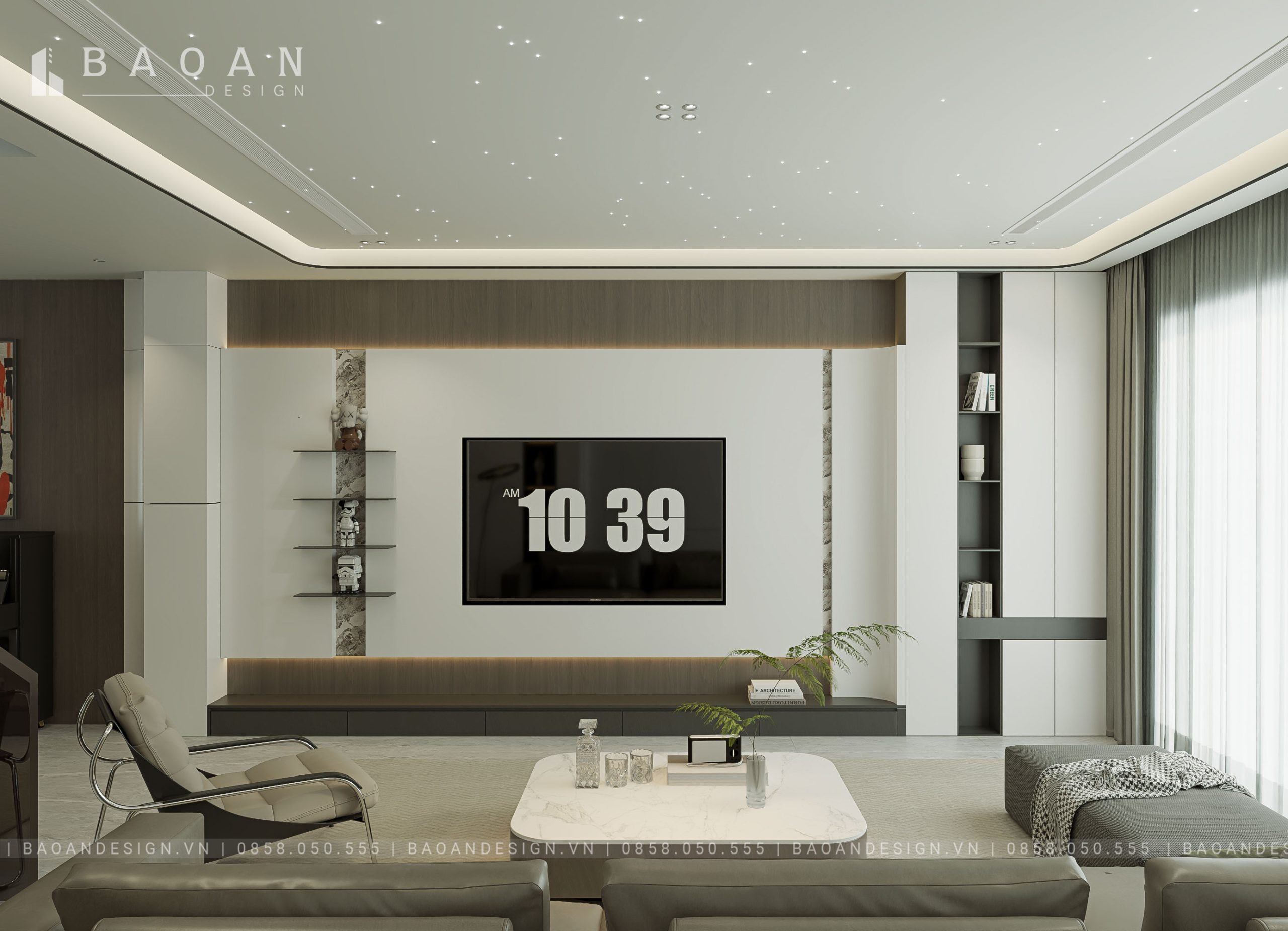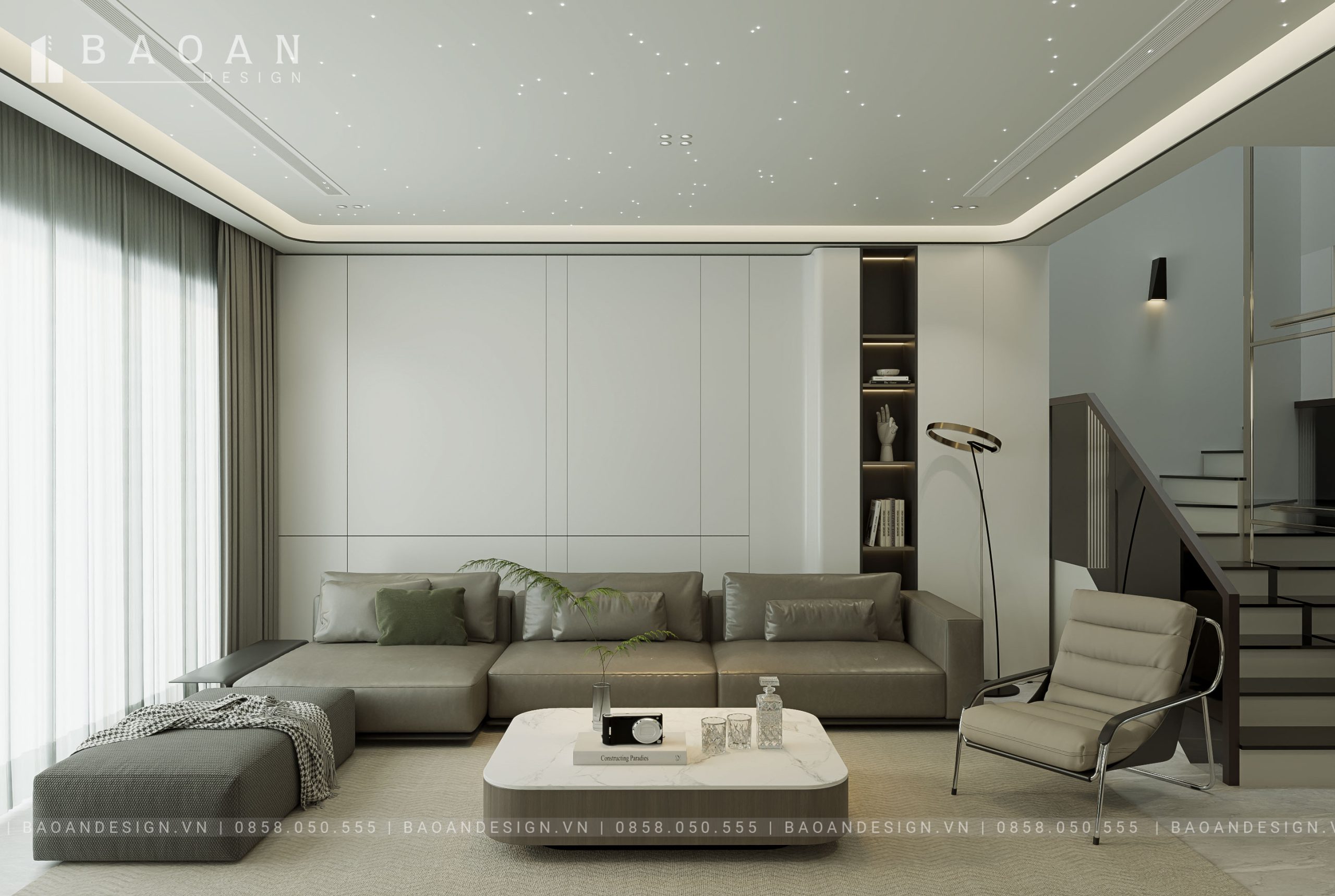 Thiết kế nội thất phòng khách đẹp, tối giản
