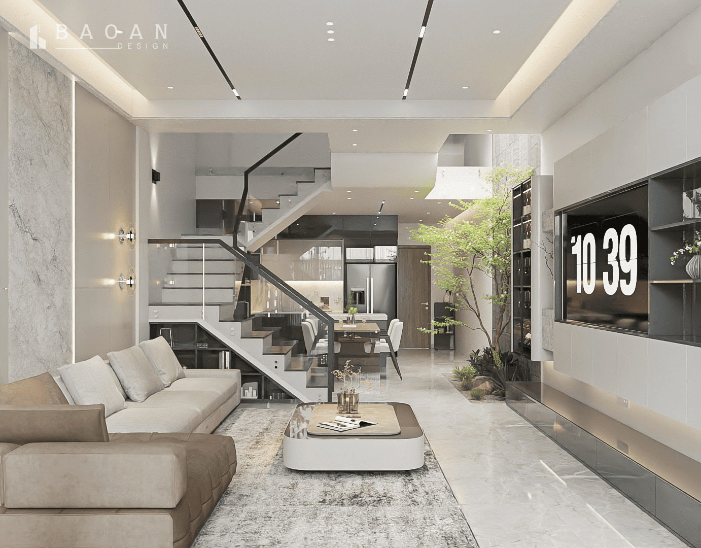 Thiết kế phòng khách liền bếp hiện đại đang là xu hướng được nhiều gia đình lựa chọn.