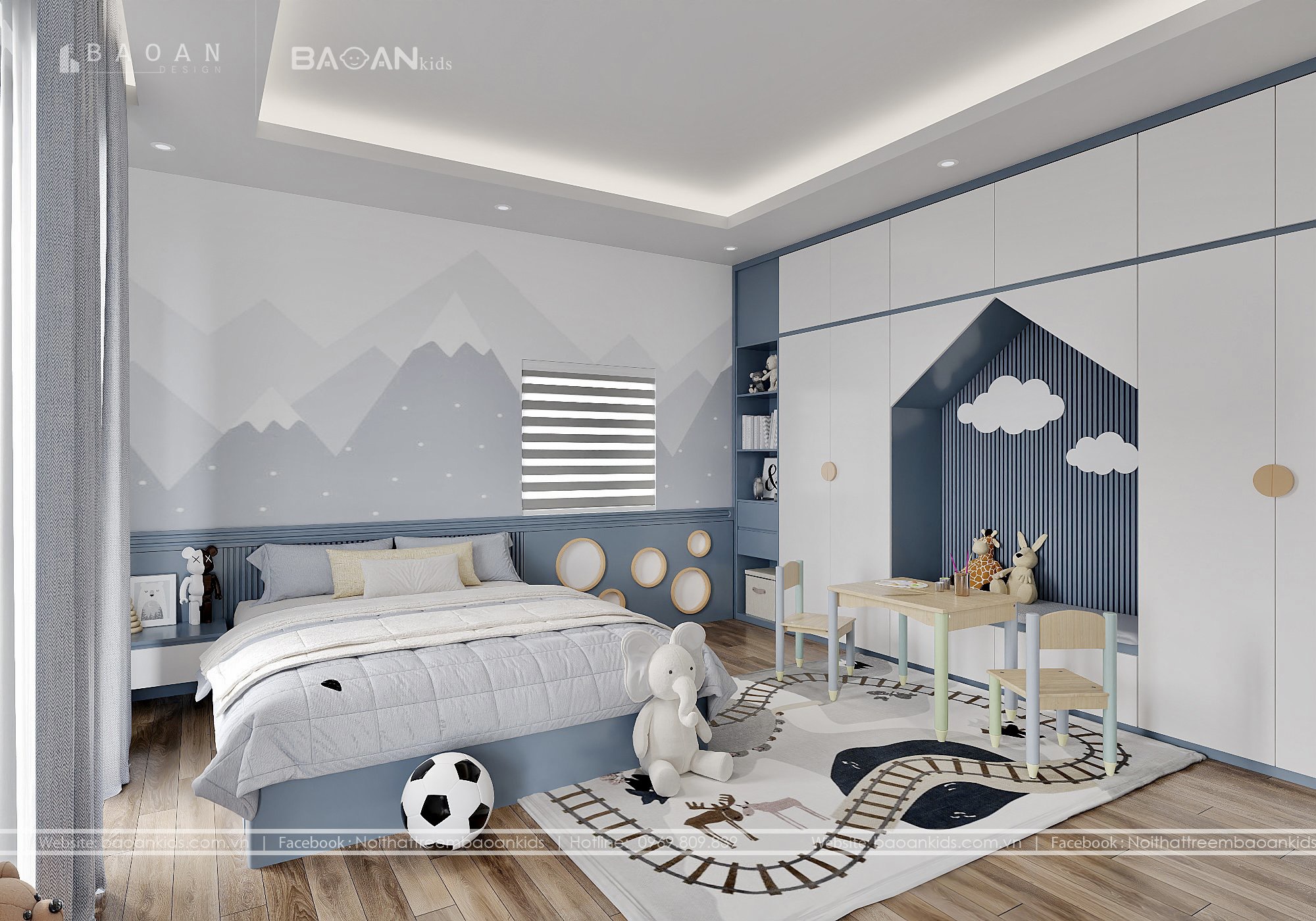 Màu xanh luôn là lựa chọn hàng đầu trong thiết kế phòng ngủ bé trai nhờ cảm giác mạnh mẽ, năng động và mang đậm cá tính. Không chỉ đẹp mắt, các mẫu phòng ngủ màu xanh còn tạo không gian yên bình. Giúp bé tập trung học tập và phát ...