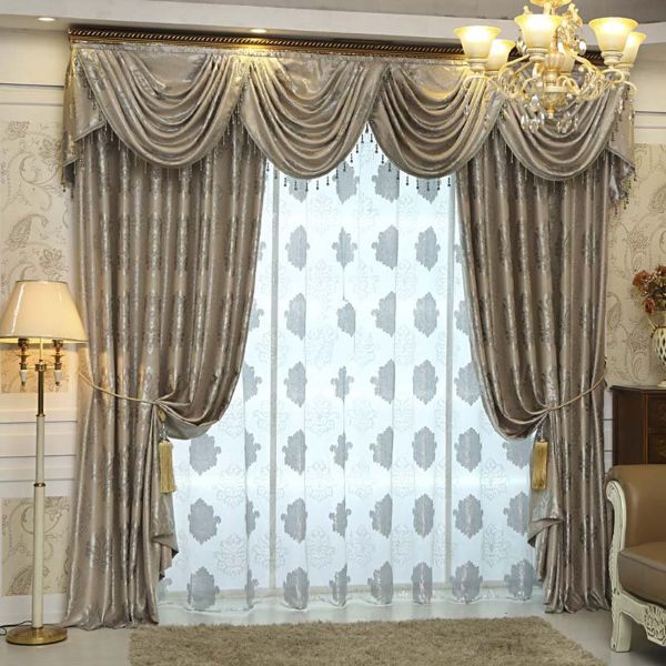 Mẫu rèm vải cửa phòng khách hoa văn tân cổ điển